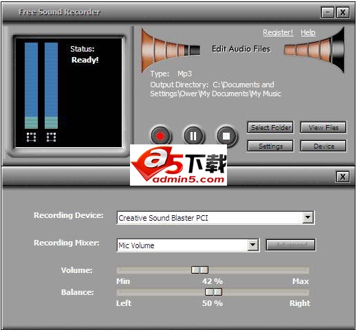 Free Sound Recorder这是一款让您从您的声卡和保存录音记录所有声音直接地进入MP3 、WMA 或WAV 文件的一个易使用的免费软件。
