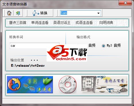 文本语音转换器可将语音转换成(Wav/mp3格式)的文件,搭配上您手里的mp3播放器学习起来效果倍增。