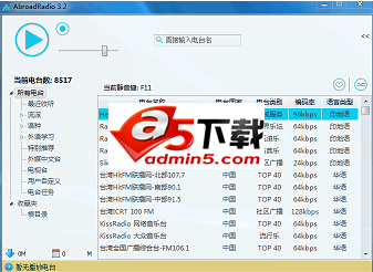 国外电台AbroadRadio是一款网络收音机程序。目前包含有6000多个国外知名的,不同风格的电台(覆盖流派有50多种),可以这么说,只有你想不到,而没有搜不到的电台。