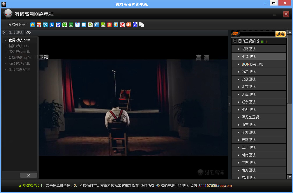 猎豹高清网络电视是一款网络媒体播放和网络在线看电视等功能的网络电视程序,集成了国内高清卫视、港澳频道。频道多,线路多,看电视必选软件。