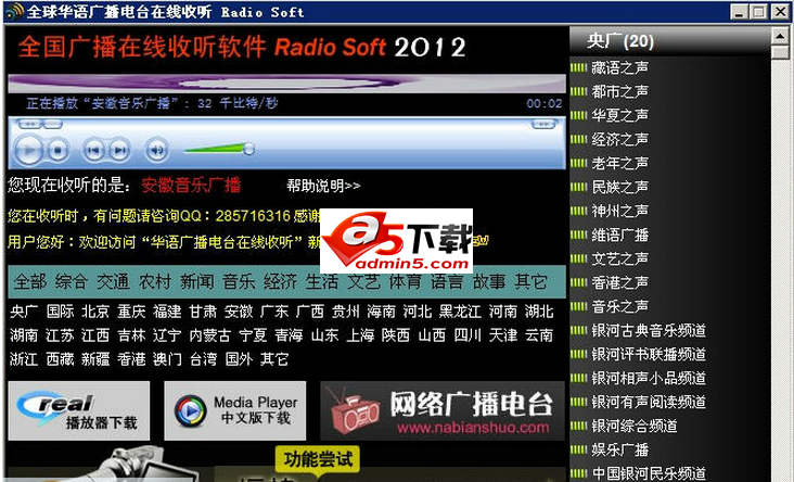 那边说Radio网络收音机收集了国内广播电台在线收听,包含新闻、音乐、经济、娱乐、相声、教育、都市、体育、评书、故事、戏曲、交通等数千个网络电台频道!