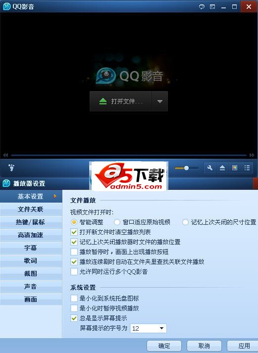QQ影音是一款由腾讯公司推出本地播放器软件。软件支持绝大多数的电影音乐格式,包括主流的Flash、RM、MPEG、AVI、WMV、DVD等等。软件首创轻量级多播放内核技术,深入挖掘和发挥新一代显卡的硬件加速能力,安装包小、CPU占用少、软件追求更小、更快、更流畅,软件界面美观简洁、简单全面、实用方便,绝无广告和插件,可快速上手,轻轻松松完成日常播放视频音频功能,真正做到简单全面实用。是用户实现播放视频音频功能的好帮手。