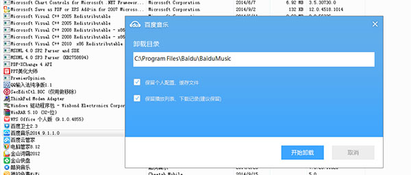 或者依次打开我的电脑->卸载或更改程序->卸载你所卸载的软件,您可以用 Window XP控制面板中的添加或删除程序功能,或用 Windows Vista、Windows 7中的程序和功能删除百度音乐卸载时,您可以选择"删除在本机保存的个人配置数据"。然后点击开始卸载。推荐您不勾选此项,以保留设置,供以后再安装时使用。