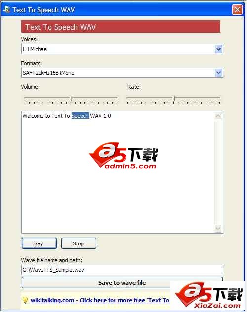 想必大家都知道 windows 里自带真人发音-microsoft LiLi ,以前也有一些“调戏”她的脚本,比如 “I Love You” 等,现在 Text To Speech WAV 利用 LiLi 的发音给我们实现了将文本转换为语音的功能。软件界面很简单,只要你输入文本(支持中文)点击 “say” 就能听到了,而且可以保存为 “wav” 文件,需要其他格式的请自行转换;以后又多了个“调戏” LiLi 的方式了
