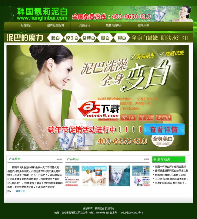 化妆品绿色网站模板是一款绿色清新的韩国靓莉泥白化妆品帝国模板。