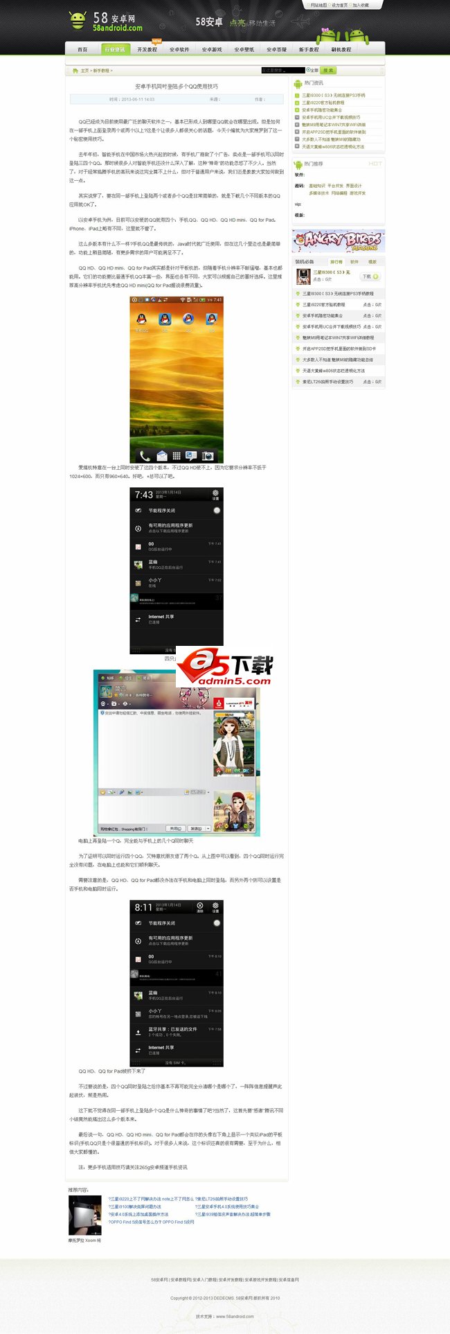 58安卓网(58Android)是为学习Android的人提供的一个平台,包含新闻资讯,基础知识,平台开发,界面设计,多媒体技术,网络编程,游戏开发,源代码,视频教程,资料下载,在线文档