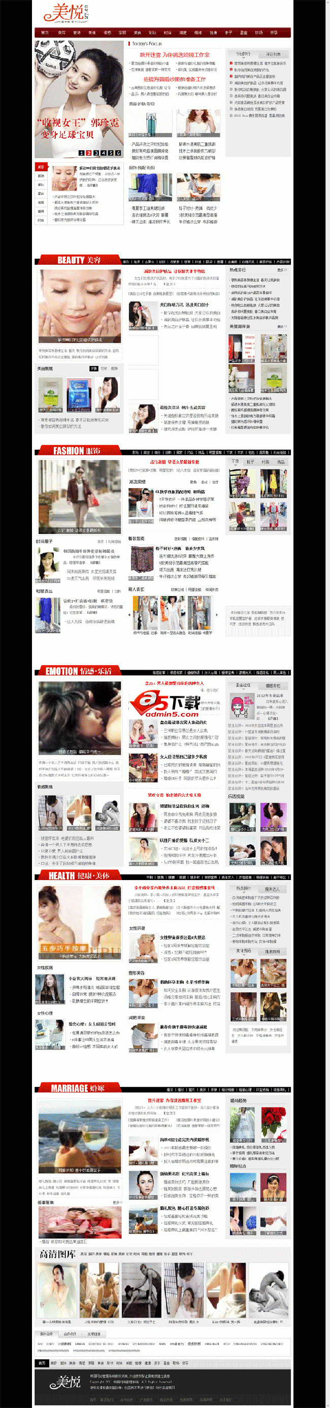 大气完美女性整站程序使用EmpireCMS v6.6 仿自爱丽网,整站程序完整,后台集成了广告位。由于太大无法上传。去掉了dfile下的图片文件和所有生成的html文件,程序内置了一部分数据可以演示,模板分为首页 频道页 列表页 内容页等等。。