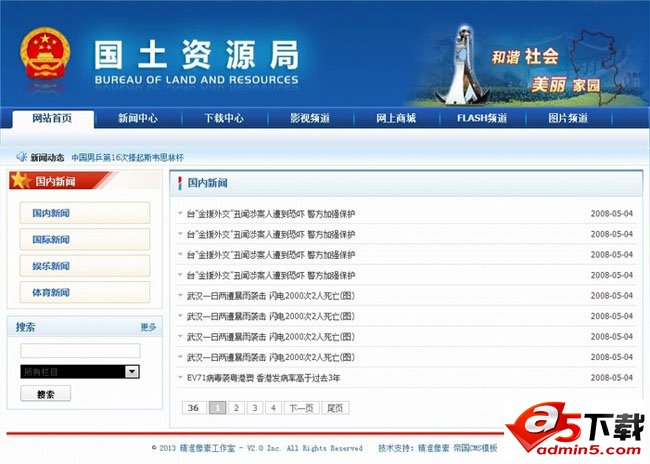 仿国土资源局帝国CMS模板为GBK编码版本,模板分为首页、默认新闻栏目页、默认新闻内容页。