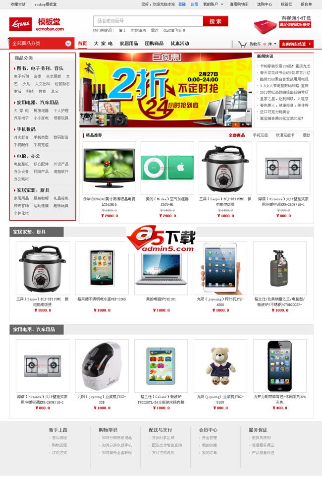 ECSHOP模板堂国美模板简洁版是一款3c综合类网站模板,版面经典,时尚美观,色调红色非常绚丽并且美观,大气又实用。