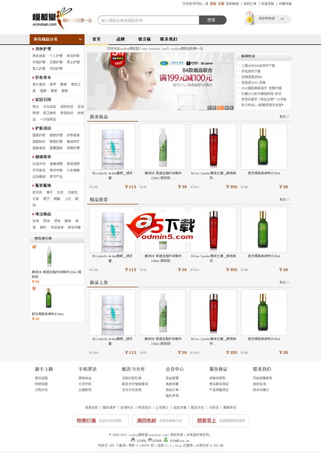 2013乐蜂网ecshop模板是是一款不可多得的美容护肤综合类网站模板,里面包含UTF-8和GBK两种版本。