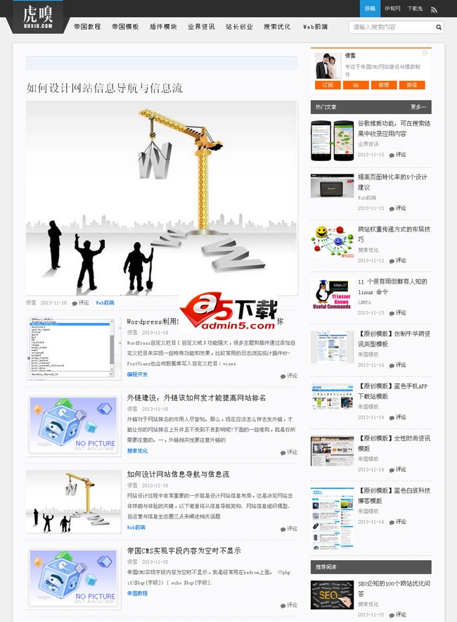 仿虎嗅网网站模板是一款仿虎嗅网的黑色科技博客帝国cms模版。