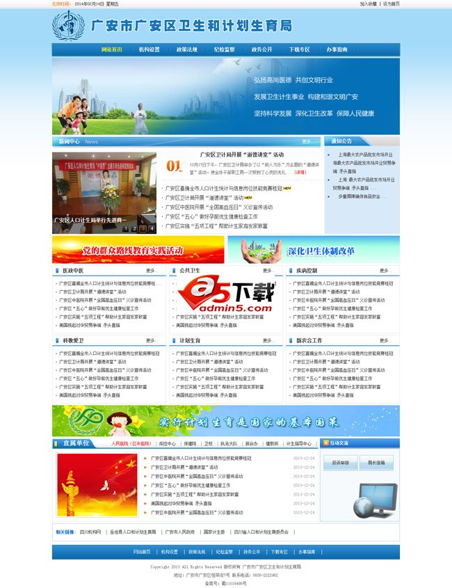 政府网站帝国cms蓝色模板是一款仿卫生计划生育局网站,采用Html5+css3 主调颜色为蓝色,页面低调、简单、稳重。