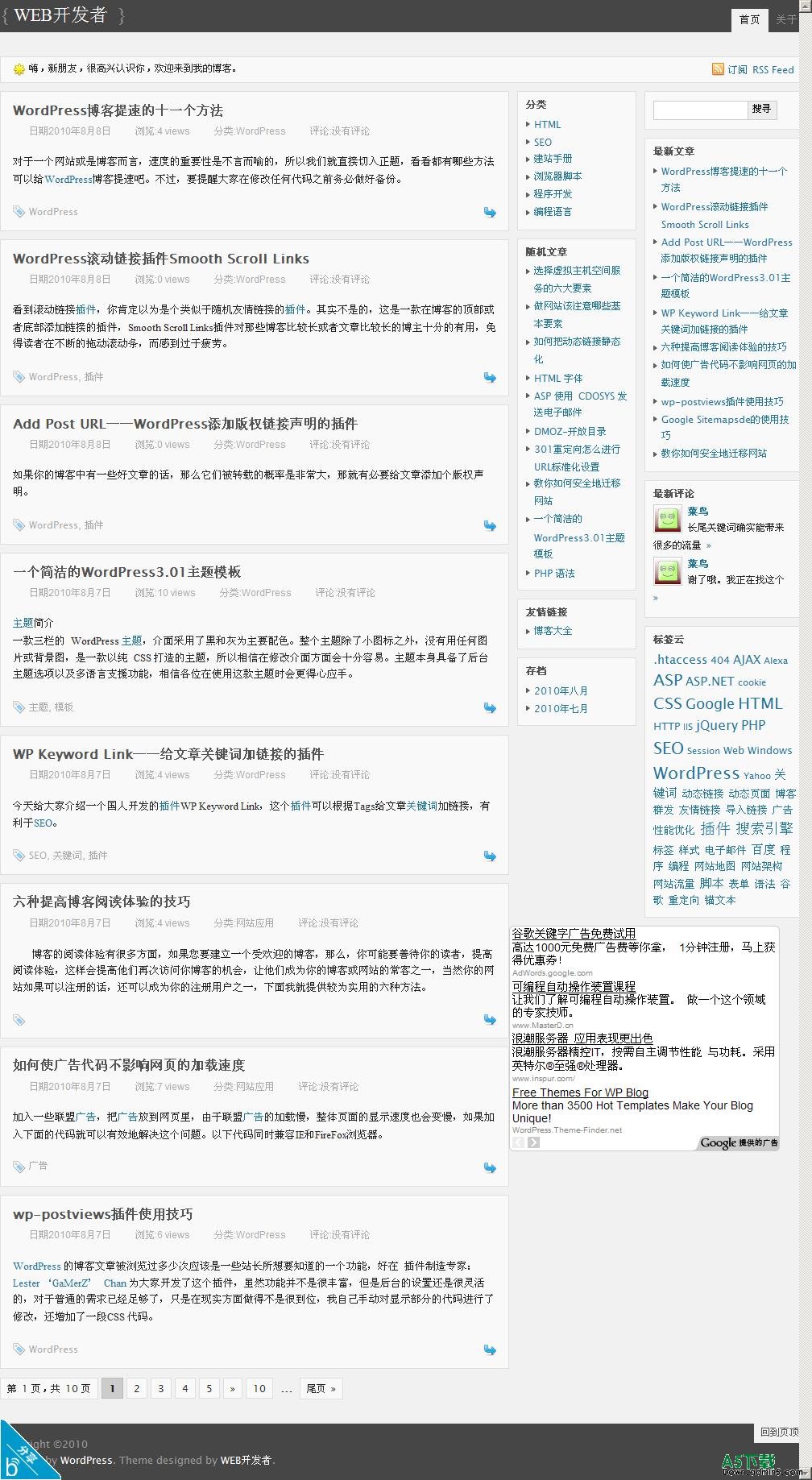 简洁的WordPress3.01主题模板(现免费放出)