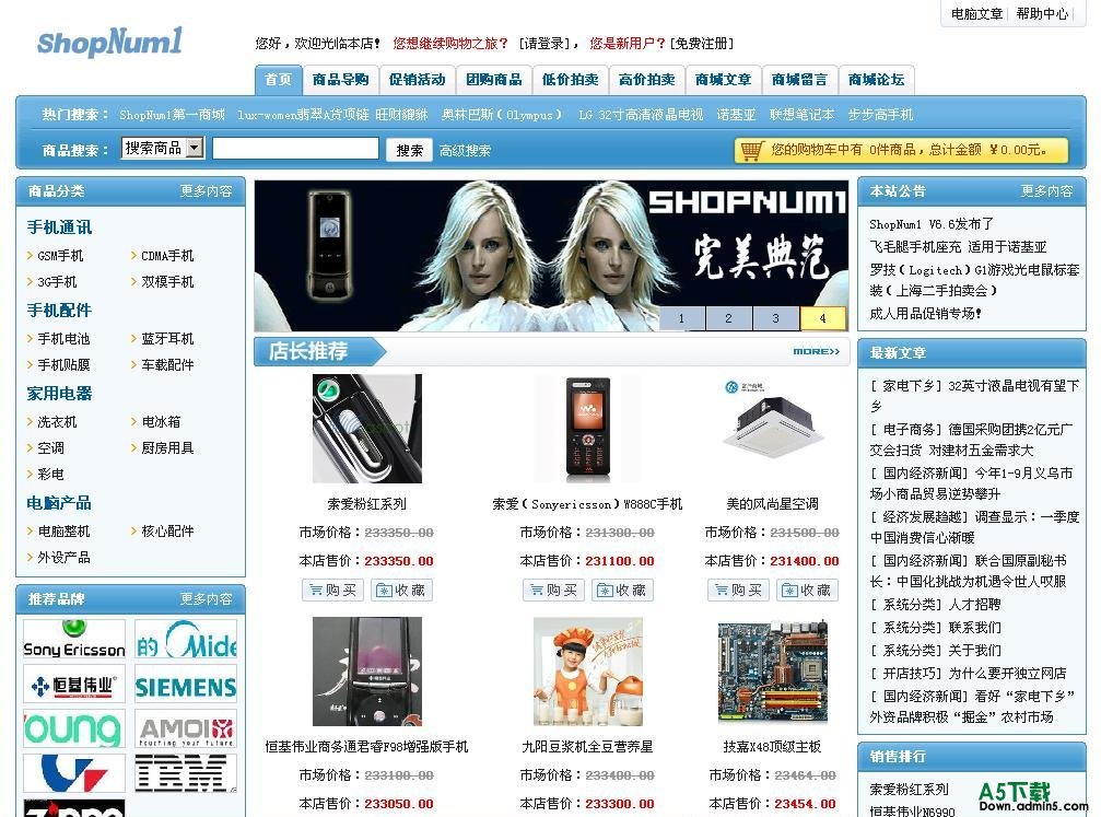 1,模板模块化,可随时在模板的页中加入新的模块,而不是加入很多的Html代码,只是ShopNum1网店系统强大的地方