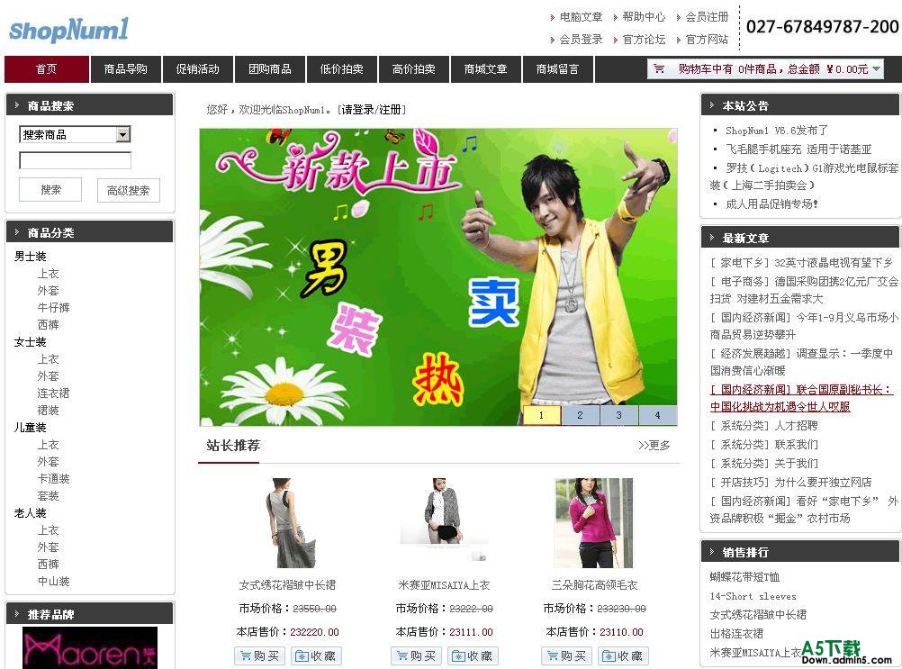 1,模板模块化,可随时在模板的页中加入新的模块,而不是加入很多的Html代码,只是ShopNum1网店系统强大的地方