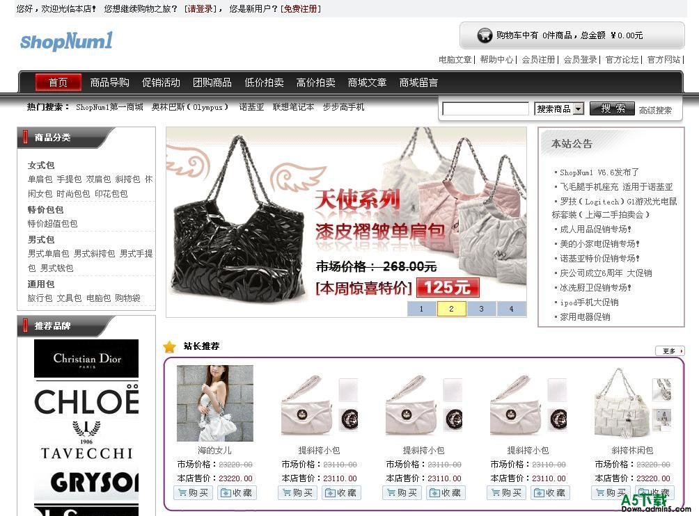 1,模板模块化,可随时在模板的页中加入新的模块,而不是加入很多的Html代码,只是ShopNum1网店系统强大的地方