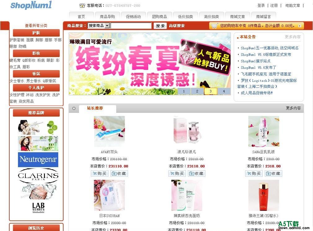 ShopNum1网店系统 化妆品模板免费下载