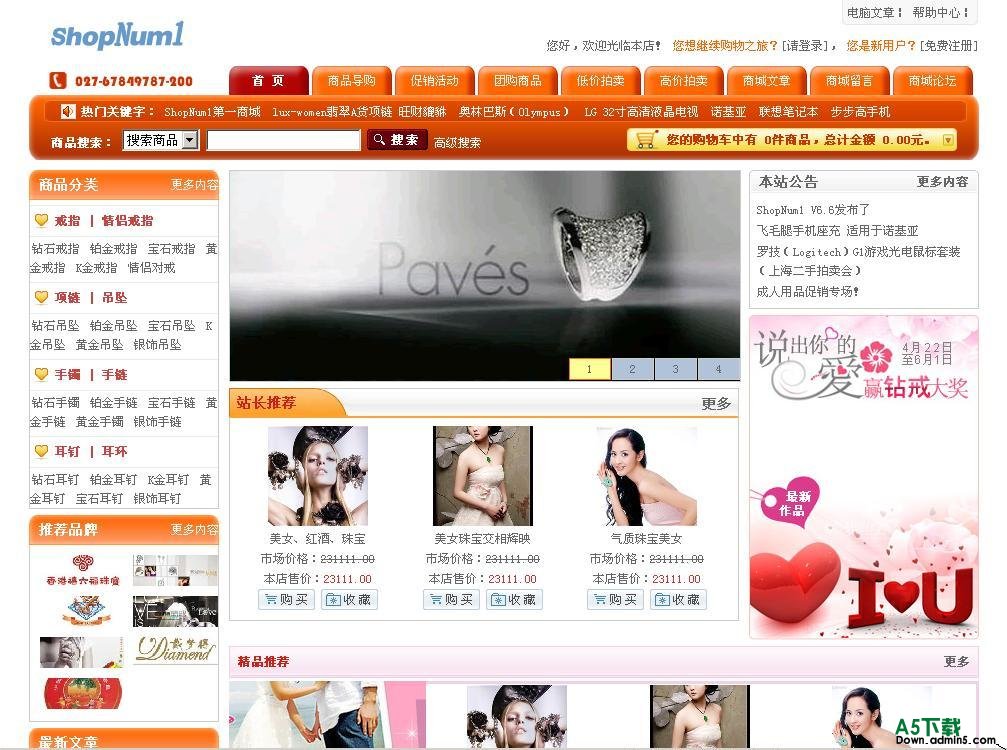 ShopNum1网店系统 珠宝手饰类模板免费下载