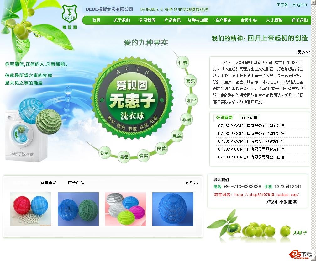 0713XP.COM进出口网站绿色模板程序是以织梦DedeCMS5.6系统为基础制作的一套完整网站,该网站适合做环保、科技、花卉产品等等。该网站经过SEO优化,用户可以下载官方5.6程序,然后下载本网站模板进行安装。后台登陆为dede,如有不懂dedecms的朋友,建议到官方先看一下安装教程!