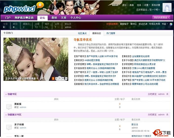 粉丝类风格模板 风格编码:GBK 主题色调:暖色调(红橙黄) 适用版本:phpwind 8.0 适用站点:综合娱乐