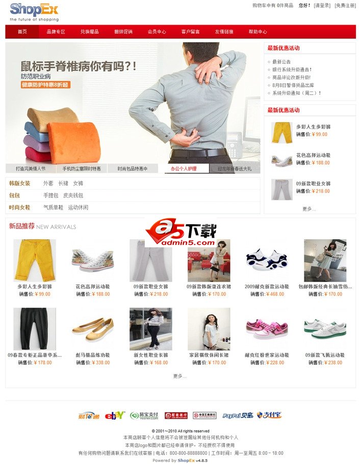 shopex 4.8 免费模板,此模板适女性用品网站、服装网站等。模板:宽990px(按照WEB栅格系统设计制作)
