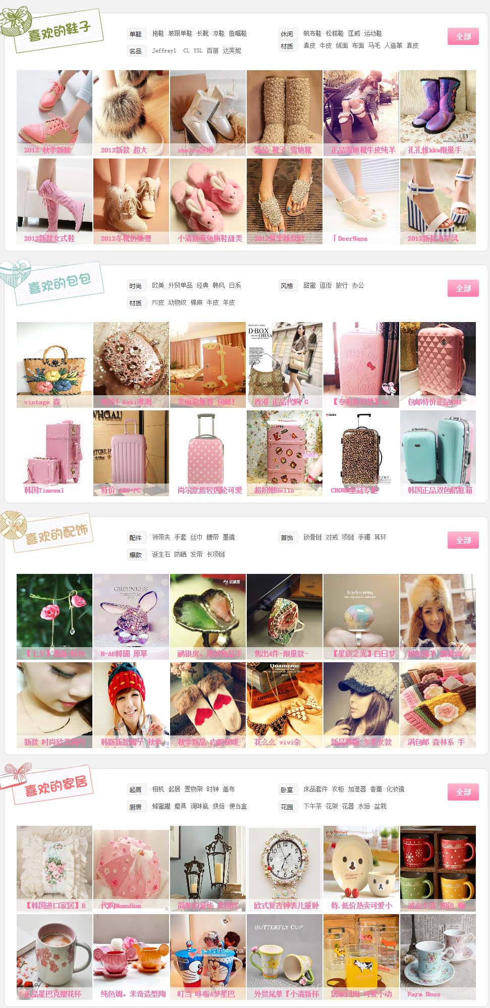 收藏、喜欢、好友分享的图片或商品,发现自己喜欢;