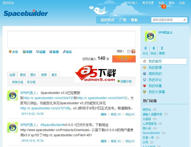 SpaceBuilder(简称SPB,软件著作权登记号: 2008SR14027)诞生于2007年, 是asp.net技术中最为强大的社区产品。作为国内最早的web2.0社区产品,SpaceBuilder始终专注于web2.0在国内的应用创新,竭尽全力为社区的发展做出自己的贡献。使用预置的博客、群组、论坛、微博、分享、相册、文件、活动、投票、资讯等应用模块,用户可以一站式快速搭建具有sns特征的社区网站。此外,为站点运营者考虑还提供了问答、招贴、招聘等扩展应用模块。