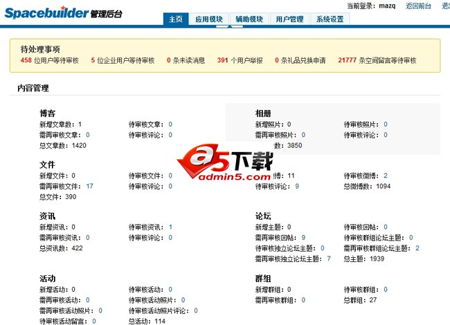 4) 后台首页增加了管理员待处理事项,对于需要做哪些管理操作一目了然;