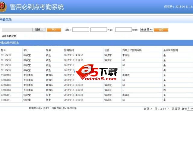指纹机考勤查询系统源码 源码描述: 警用必到点考勤查询系统,可以根据日期查询签到信息 个人登录后可以查看自己的具体签到信息 默认管理员号:10000000,密码:51aspx 个人登录号:20000000,密码:123456