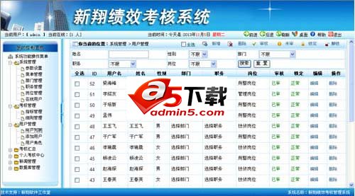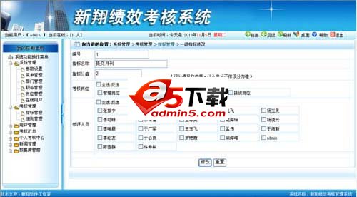 考核功能:可按月对用户实施考核、可据岗位分配不同指标。指定不同人评分。