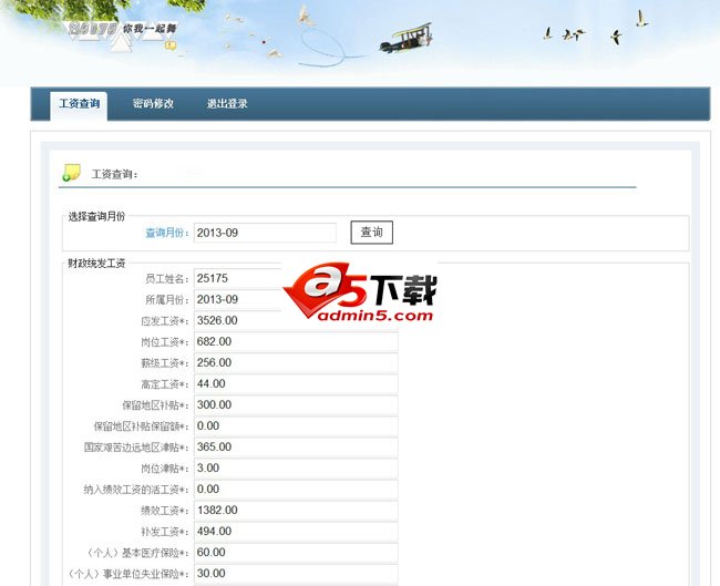教职工利用身份证号码和密码可以查询某月份的工资。有修改自己密码权限。