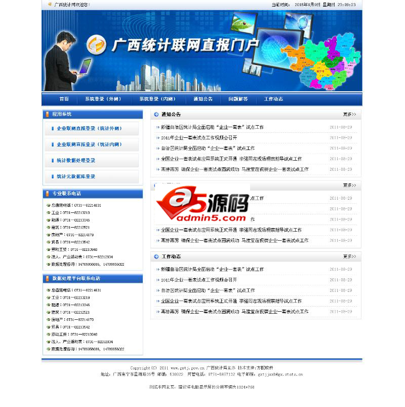 一个统计局直报门户网站模板,蓝色主题,简单易用,整站下载,稍做修改即可变成另外的网站。
