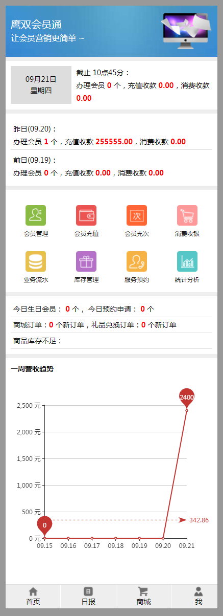 鹰双会员通是由鹰双软件倾力打造的一款基于O2O的综合性会员营销管理系统,该系统融合客户管理、营销管理、收银管理、库存管理、决策分析、企业网站、电子商城、积分商城、在线预约、售后服务等众多功能模块于一体,同时包含PC和手机两套版本,不但可以帮企业实现客户跨店消费、线上线下消费信息共享, 而且可以帮企业轻松搭建一套会员信息互联互通的企业网站和电子商城平台,是企业实现会员制营销、O2O营销、拉近客户关系、改善日常经营不可缺少的工具。