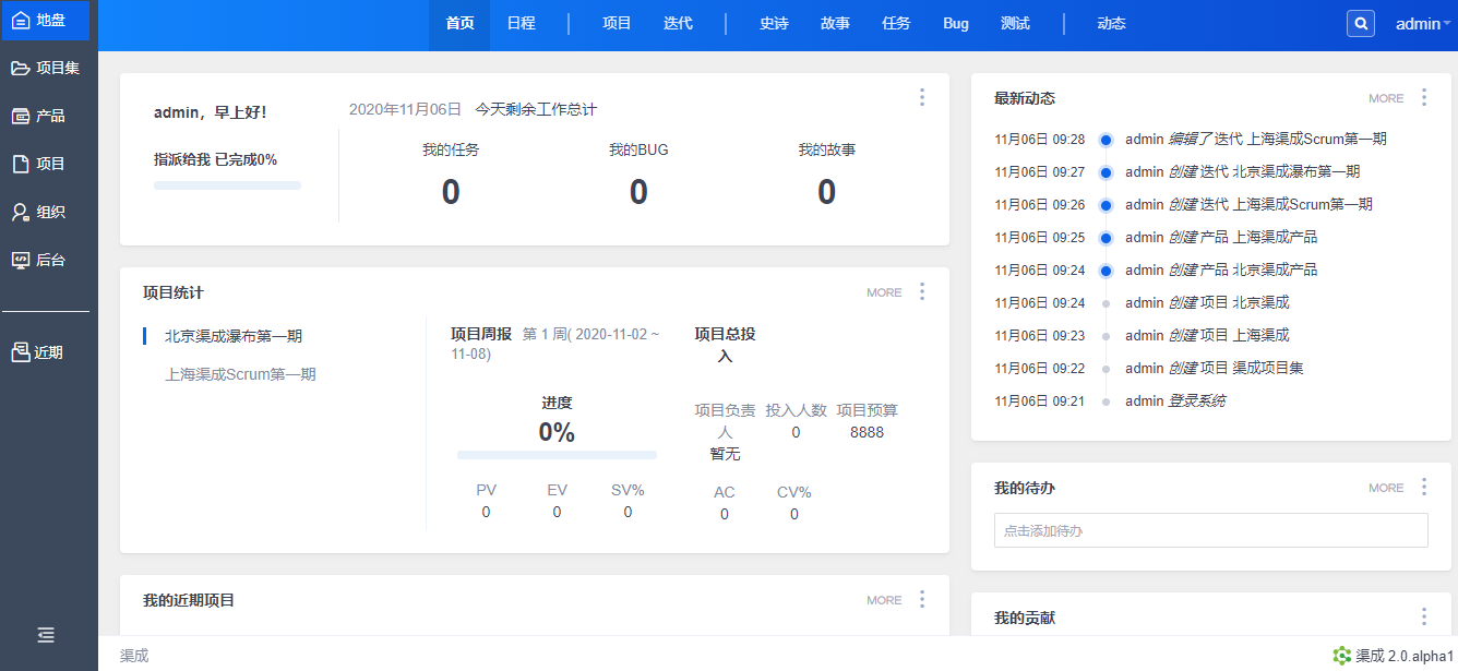 这里的“大”项目是区别于渠成老版本中的项目, 渠成老版本中的项目只是一期一期的冲刺或迭代,而新版 渠成中的项目中可以包含多个冲刺或迭代。