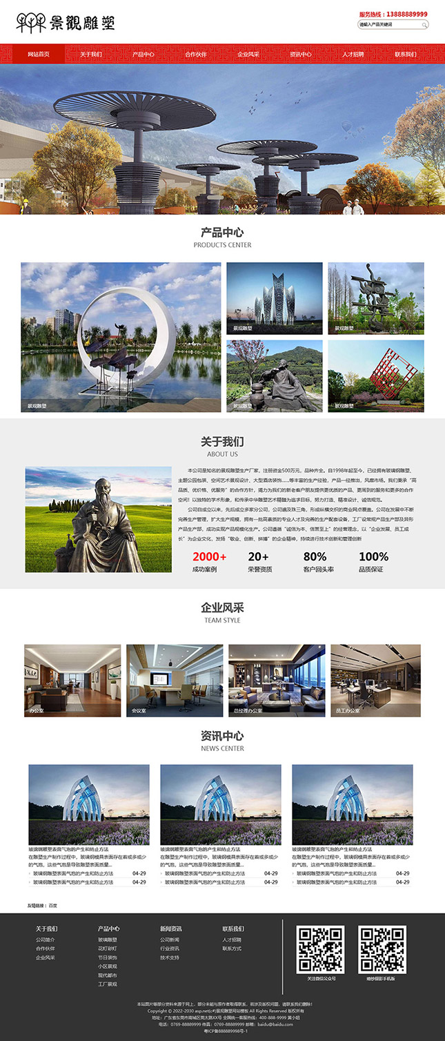 asp.net(c#)景观雕塑网站模板(PC+WAP),适合景观雕塑、品牌设计、机械、五金、电子、包装……等公司使用,内置SEO功能,利于收录和排名。提供整站模板源码,可自行管理和维护。