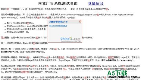 内文广告的实质是把网页中指定关键字替换为带弹出“气泡”的超链接形式,当鼠标划过关键字时,广告(“气泡”)自动弹出。所以内文广告系统的核心数据是广告关键字和具体广告内容。