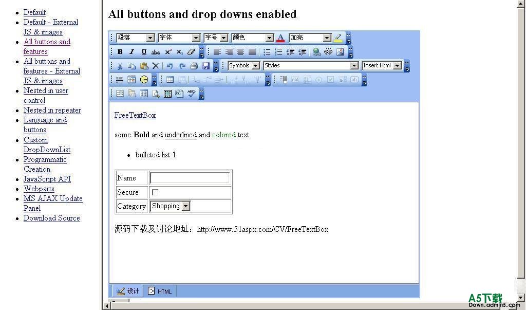 文件夹下有Asp.net1.1/2.0/3.5各个环境下可以使用的FreeTextBox.dll