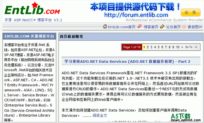 基于Subtext v2.0 开源ASP.NET博客系统的中文汉化及定制化开发,EntLib.com 开源博客小组根据用户的反馈意见,不断改进系统。2009年1月10日正式发布 EntLib.com Blog 开源博客平台 v3.1,已经在http://blog.EntLib.com 上线,欢迎访问体验,并提供反馈意见。本博客平台提供全部项目源代码共下载、交流、分享。