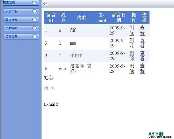 这是自己做的一个小东西,用了公共类的编写,用access存储数据,还用到导出学生作业完成信息到xls, 后台地址是admin 用户名密码均为51aspx