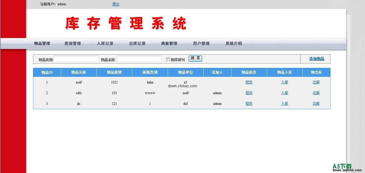 实现了物品类别的添加、修改、删除功能,方便库存物品分类管理。