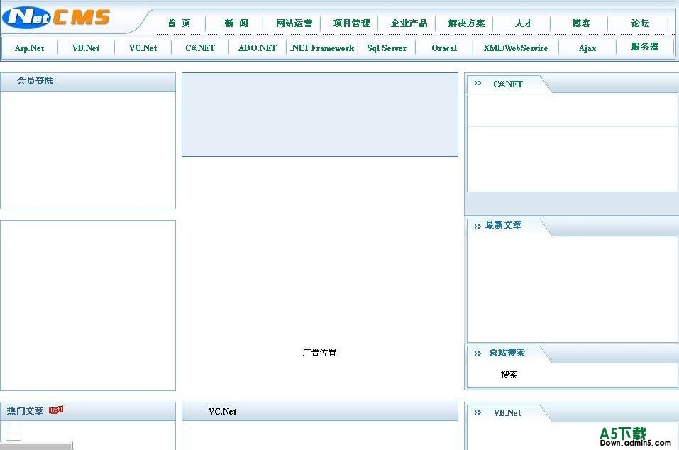NetCMS是基于ASP.NET2.0开发的网站内容管理系统,程序完全开源,没有任何文件加密, 不需要注册任何组件,完全开源方便您二次开发。