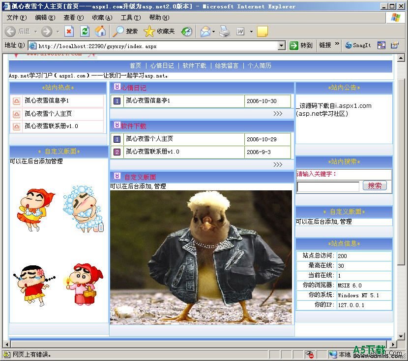 一款功能强大的个人主页系统,完善的后台管理功能,管理员可以在后台对前台进行全方位的控制。 使用SQLSERVER数据库(放在data文件夹中) 请手动配置WEB.CONFIG(中的链接字符串) 后台:admin/login.aspx asp.net2.0 版本:后台帐号密码均为:aspx1
