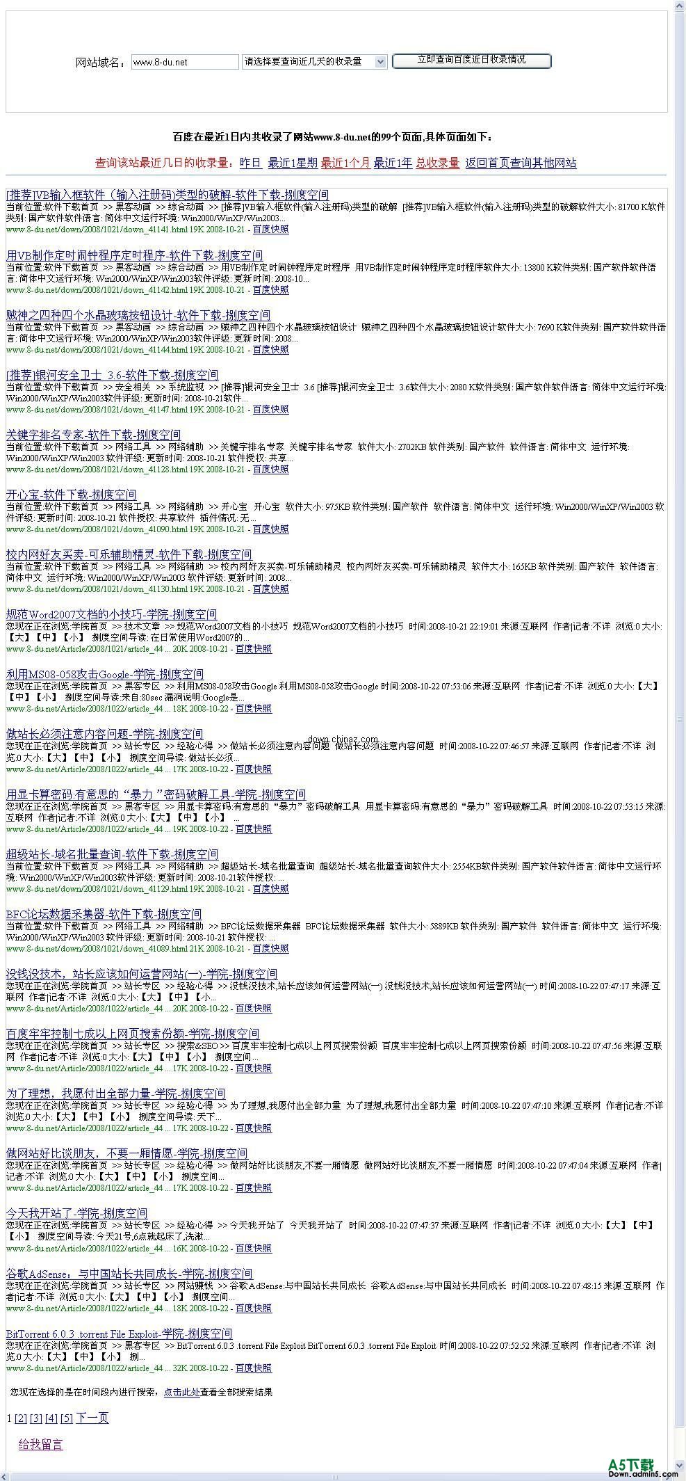 帮助站长了解到底百度蜘蛛近期内到底有没有在自己的网站上爬可以查到昨日、最近1星期、最近1个月、最近1年、总收录量!!