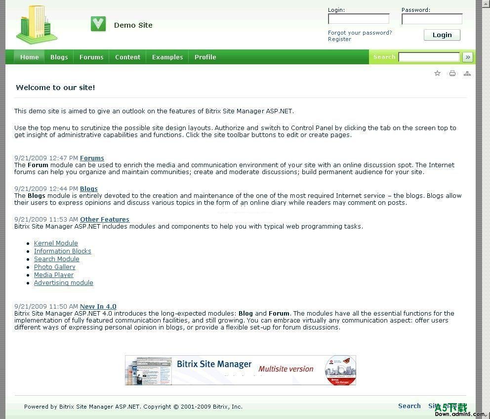 Bitrix网站管理系统是新一代基于ASP.NET平台的内容管理解决方案,允许你创建先进的网络项目,文本和丰富的多媒体内容。这是一个功能强大和方便的工具,基于页面的编辑和发布。 Bitrix网站管理系统也有类似Windows的用户界面并为您提供真正灵活的访问显示在您的网站或门户网站内容的权限配置。Bitrix网站管系统ASP.NET版包括8个模块,使内容编辑都非常彻底和惊人的容易。其中包括论坛,广告,博客,搜索,图片库,媒体播放器等。