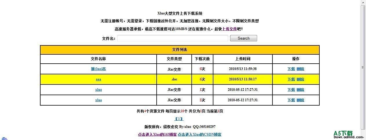 最大可上传50MB文件,任何文件类型均可上传,xluo独家的文件名扩展技术。