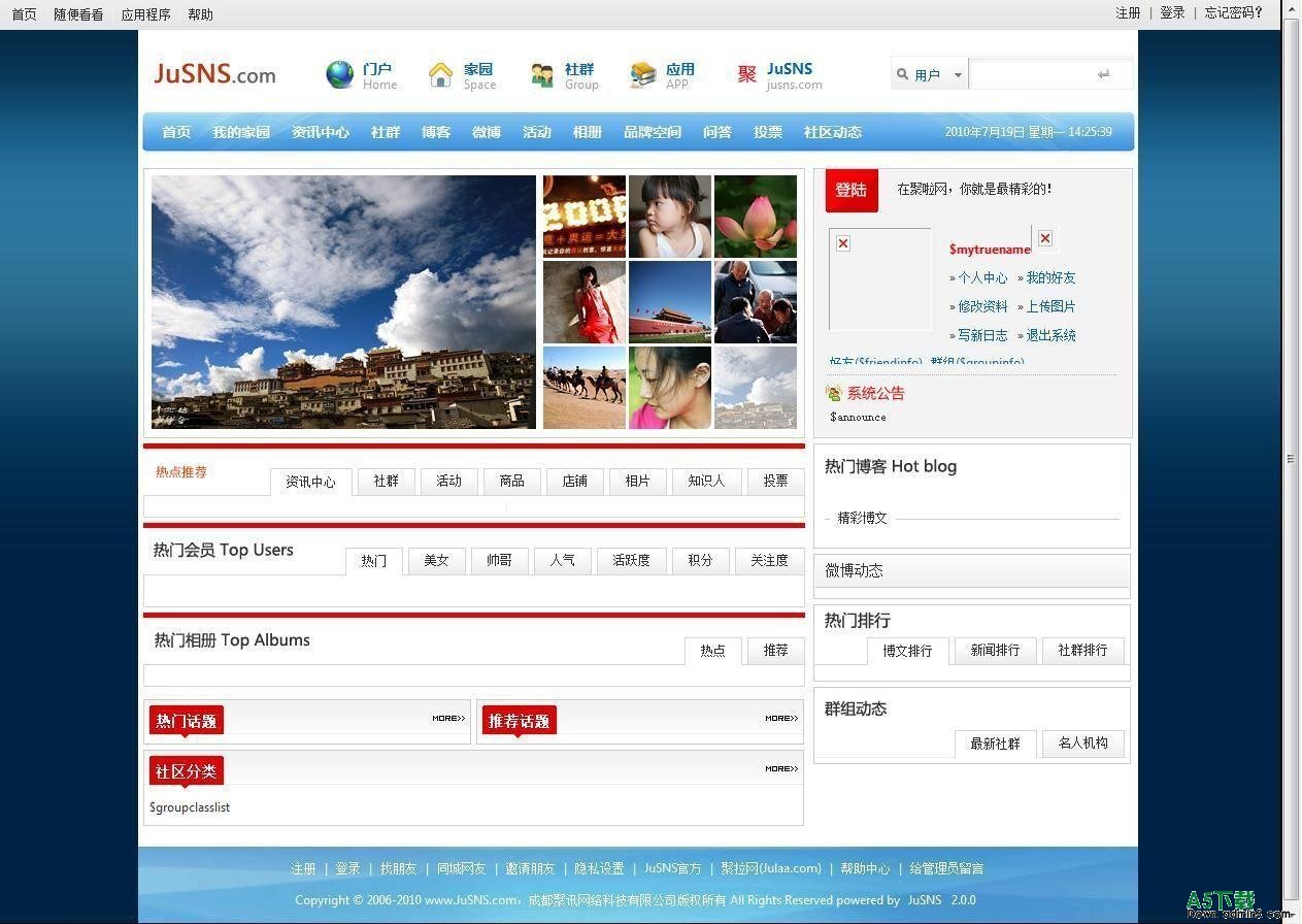 JuSNS目前基础功能包括朋友,空间,心情日记,博客,相册,群组,分享,礼物,账本,电影,投票,活动,新闻,问答,留言本,记事本等16个基础模型