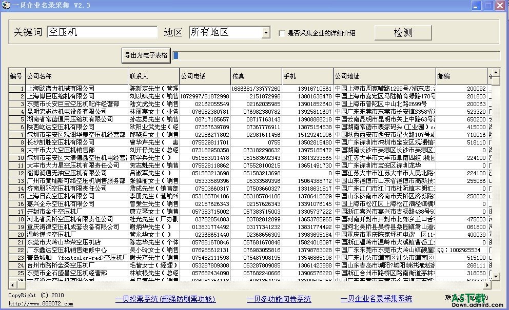 功能强大,功能齐全,负载强,接受其他网站的采集模块的定制. 信息采集全面:包括公司所有信息,可以导出为电子表格. 操作简单,省时省力,企业推广大案好助手!. 接受各种采集模块的定制,让你马上拥有千万级的企业数据 接受手机短信平台开发