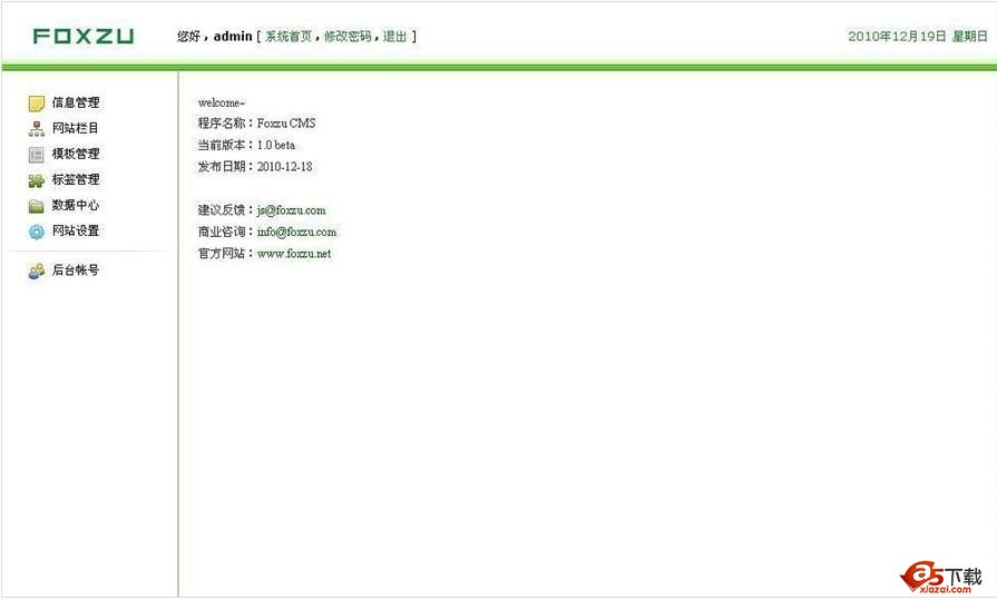 FoxzuCMS内容管理系统,是国内CMS市场的新秀、也是国内少有的采用微软的ASP.NET 2.0 + SQL2000/2005 技术框架开发的CMS,充分利用ASP.NET架构的优势,突破传统ASP类CMS的局限性,采用更稳定执行速度更高效的面向对象语言C#设计,全新的模板引擎机制, 全新的静态生成方案,这些功能和技术上的革新塑造了一个基础结构稳定功能创新和执行高效的CMS。