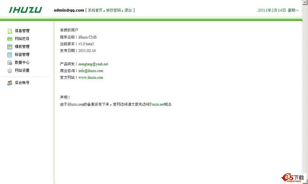 iHuzu CMS 狐族内容管理系统 v1.0 Beta12