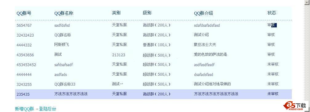 基于三层架构开发的简易QQ群发布系统,使用XML作为数据存储。 1.可以自定义QQ群的分类,方便管理和用户查看。 2.QQ群由用户自助发布,并及时显示,通过后台对QQ群进行审核。 3.QQ群按照审核状态和QQ群的级别进行排序。 后台账号:admin 密码:www.sffb.net 本系统可以很好的嵌入到其他网站中去,除此之外,该系统也是学习3层架构和XML操作的良好素材。